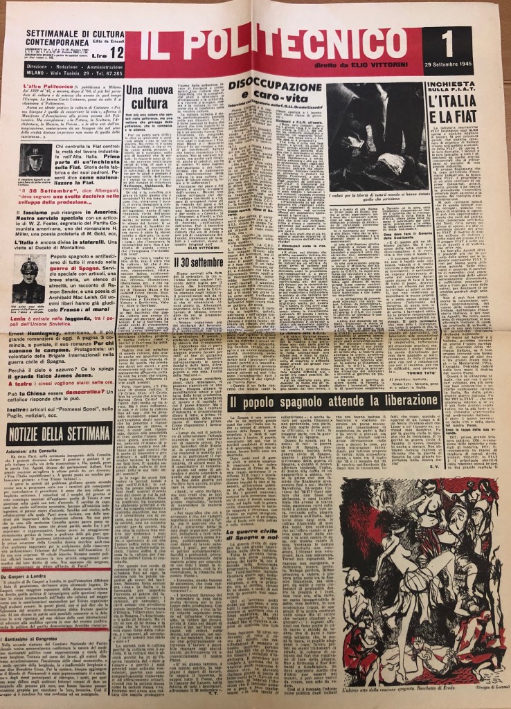 Di grande interesse la prima annata de Il Politecnico diretto da Elio Vittorini dal dopoguerra in poi.